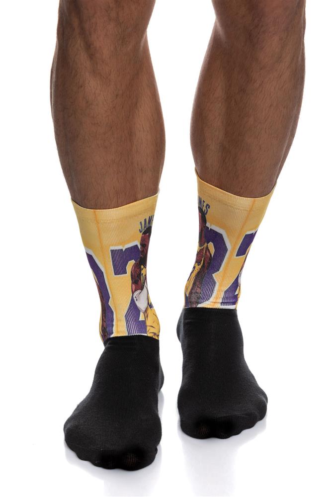 Ανδρική βαμβακερή κάλτσα με τύπωμα τον παίχτη της Lakers, LeBron James. Εκτύπωση πολύχρωμη,ανεξίτηλη ,νέας τεχνολογίας κάλτσες που δεν ξεβάφουν με την χρήση , τον χρόνο και το πλυντήριο ρούχων. Μια λεπτού πάχους κάλτσα. Ενδείκνυται για καθημερινή χρήση. Σύνθεση: 50% Βαμβάκι, 17% Πολυαμίντ, 3% Ελαστάν, 30% Μικροπολυαμίν