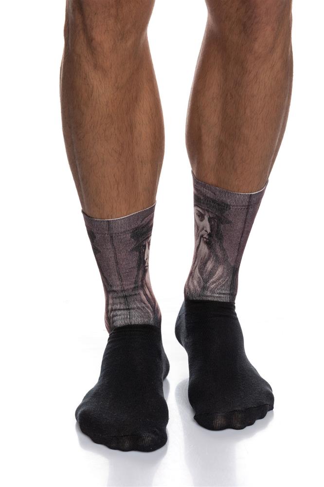 Ανδρική βαμβακερή κάλτσα με τύπωμα σχέδιο Λεοναρντο ντα Βιντσι. Εκτύπωση πολυχρωμη,ανεξίτηλη ,νέας τεχνολογίας κάλτσες που δεν ξεβάφουν με την χρήση , τον χρόνο και το πλυντήριο ρούχων. Μια λεπτού πάχους κάλτσα. Ενδείκνυται για καθημερινή χρήση. Σύνθεση: 50% Βαμβάκι, 17% Πολυαμίντ, 3% Ελαστάν, 30% Μικροπολυαμίν