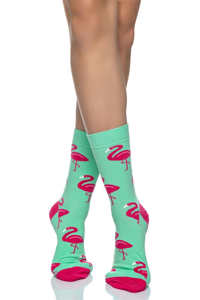 Γυναίκεια βαμβακερή κάλτσα, με σχέδια φλαμίνγκο. Μια λεπτού πάχους κάλτσα. Ενδείκνυται για καθημερινή χρήση. Ανθεκτική και άνετη.Σταθερό λάστιχο, για καλό κράτημα στο πόδι .