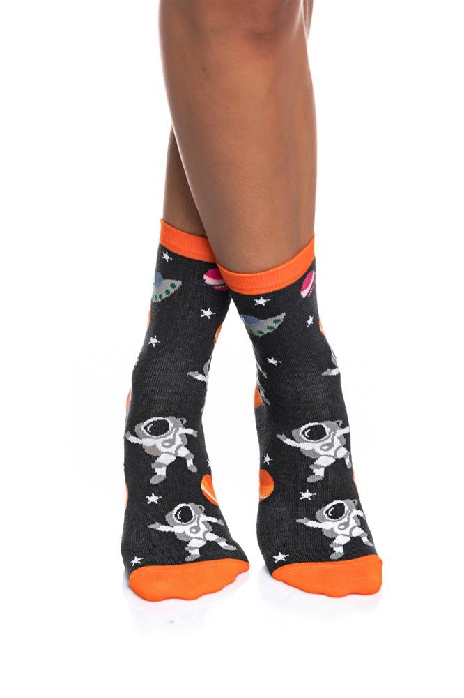 Βαμβακερή γυναίκεια κάλτσα με σχέδιο αστροναύτη στο διάστημα. Λεπτή κάλτσα από εξαιρετικής ποιότητας βαμβάκι με φαρδύ μαλακό λάστιχο που συγκρατεί και δεν ενοχλεί. Ενδείκνυται για καθημερινή χρήση. Ανθεκτική και άνετη.