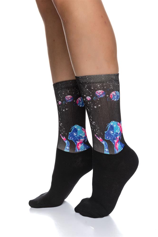 Γυναίκεια βαμβακερή κάλτσα με τύπωμα σχέδιο πλανήτες. Εκτύπωση πολύχρωμη,ανεξίτηλη , νέας τεχνολογίας κάλτσες που δεν ξεβάφουν με την χρήση,τον χρόνο και το πλυντήριο ρούχων. Μια λεπτού πάχους κάλτσα. Ενδείκνυται για καθημερινή χρήση. Σύνθεση: 50% Βαμβάκι, 17% Πολυαμίντ, 3% Ελαστάν, 30% Μικροπολυαμίν