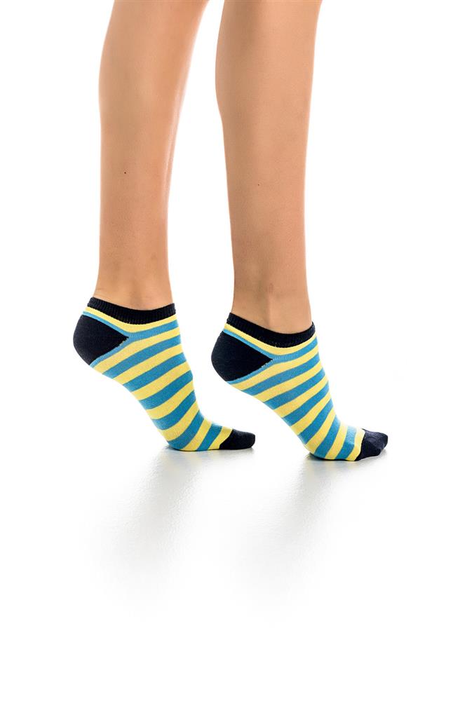 Κοφτή κάλτσα σε πρακτική συσκευασία τριών τεμαχίων, μια μονόχρωμη, μια με σχέδιο ρίγα και μια διαφορετικό χρώμα στη φτέρνα -μύτη και τετράγωνα. Απαλή ύφανση, μεγάλη άνεση και ανθεκτικότητα. Από ελαστικό βαμβακερό ύφασμα και ελαστική ραφή περιμετρικά που βοηθάει την κάλτσα να παραμένει στη θέση της.