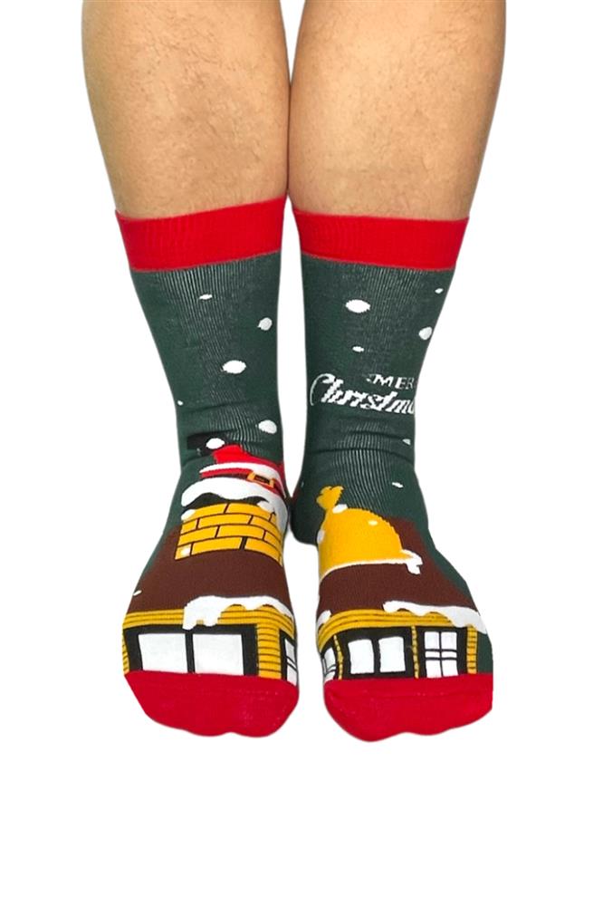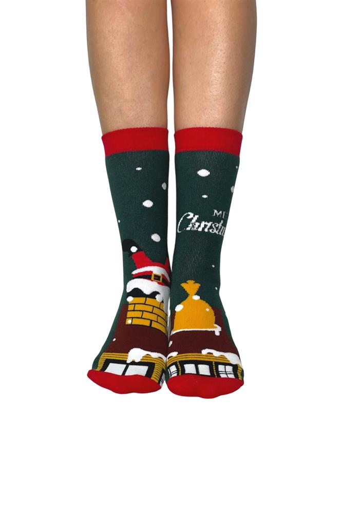 Χριστουγεννιάτικες, βαμβακερές γυναικείες κάλτσες με εσωτερική επένδυση πετσέτα και διαφορετικό σχέδιο αριστερό-δεξί πόδι. Είναι ζεστές και ευκολοφόρετες, κατασκευάζονται από βαμβακερό μείγμα άριστης ποιότητας, διαθέτουν λάστιχο στο πάνω μέρος και προσφέρουν άψογη εφαρμογή στο πόδι.